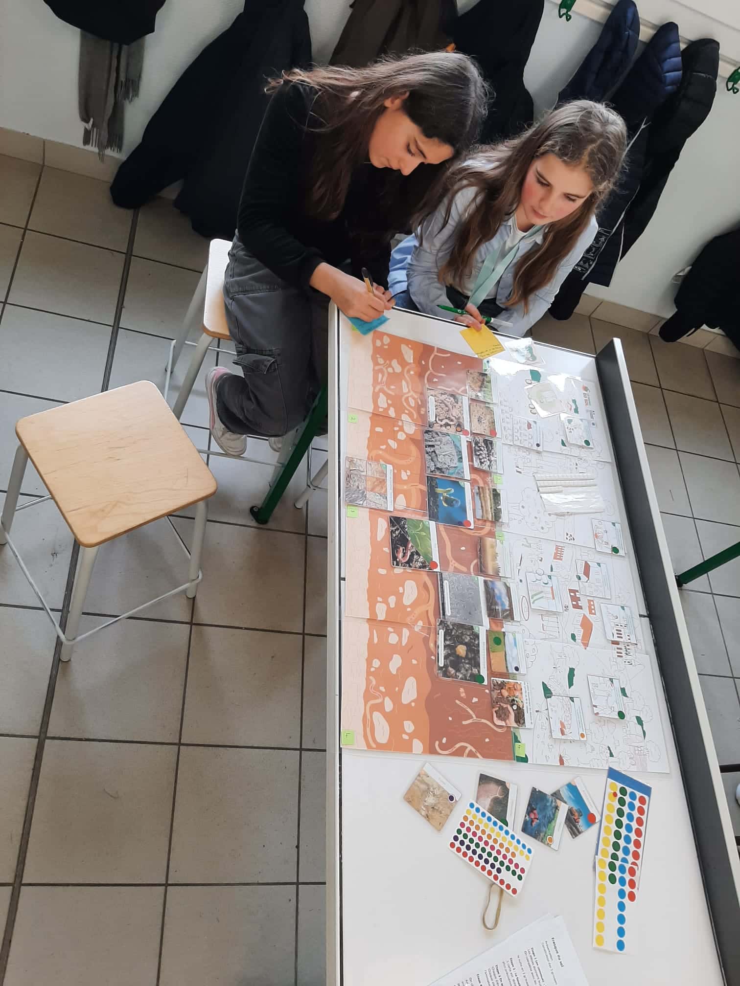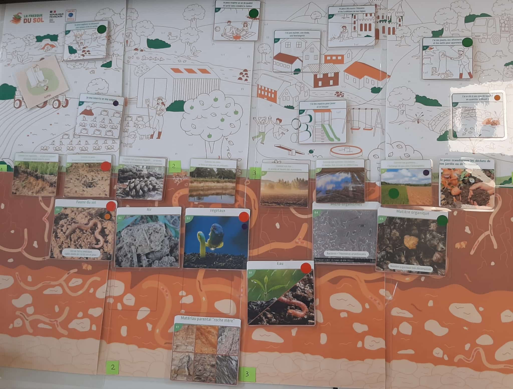 Dans le cadre de l’atelier jardinage en permaculture, des élèves de 6eme et de 5ème ont participé à élaborer une fresque des sols. Il s’agit d’une activité collaborative afin de comprendre :