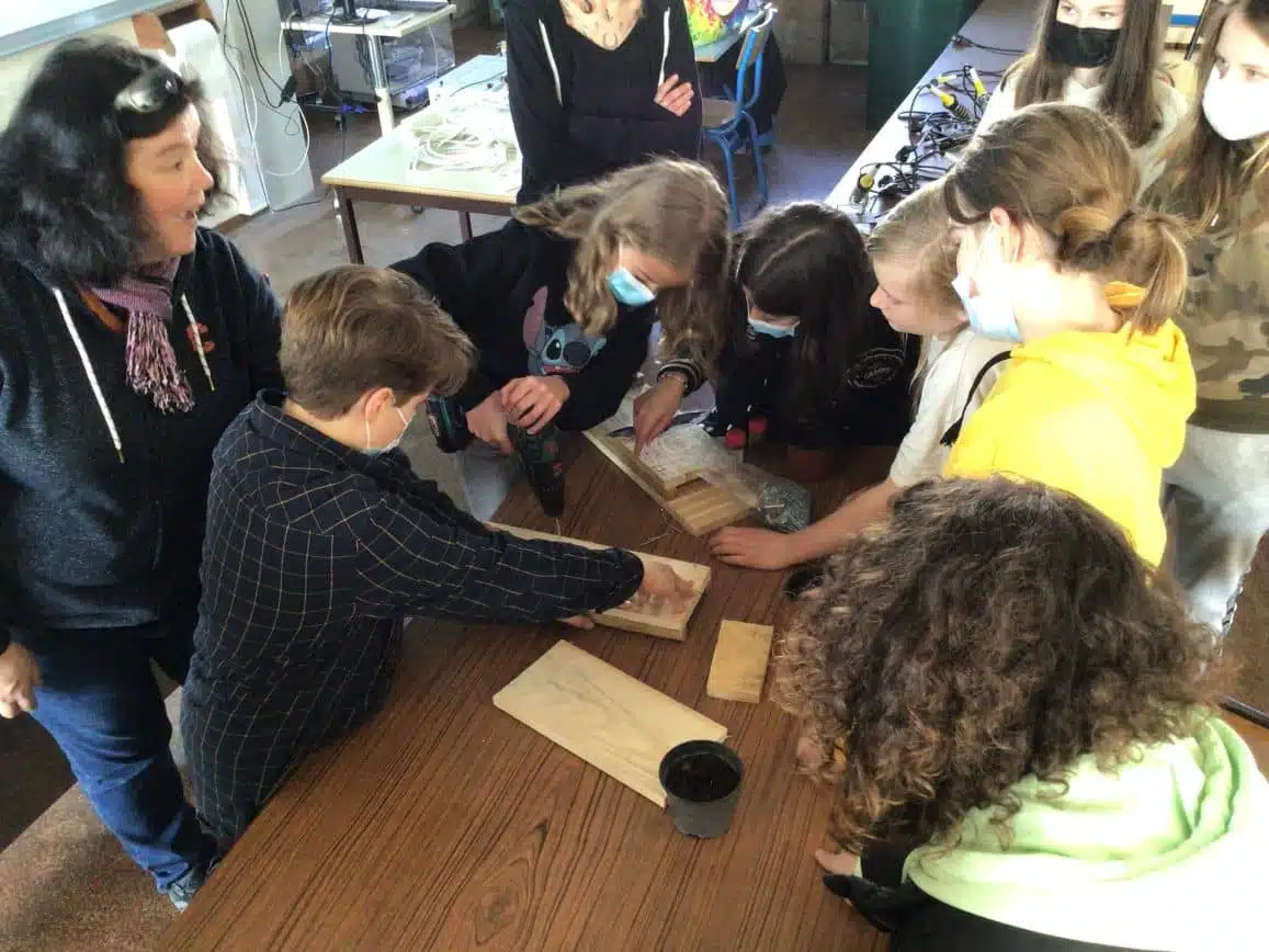 Mme Heinry du CPIE Loire Océane est intervenue deux fois auprès des éco délégués pour construire des nichoirs pour oiseaux et chauves-souris. Ils ont été installés dans le collège.
