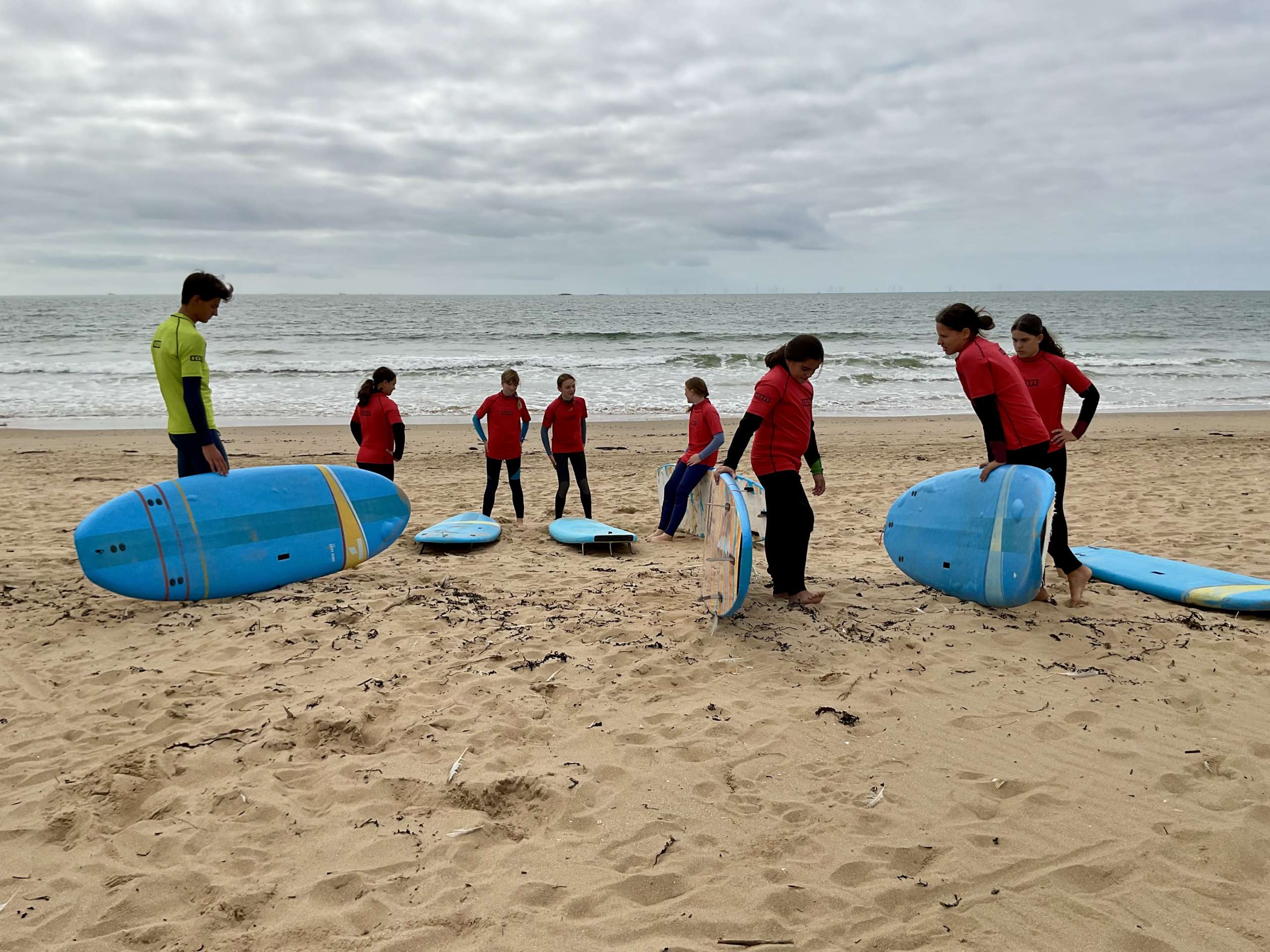 Lorsque le temps le permettra, c’est à dire en automne et au printemps, les 18 élèves du groupe mixte constitué cette année vont pouvoir continuer d’évoluer à leur rythme tous les mercredis de 13h à 15h au club de surf Les Voiles Royales.