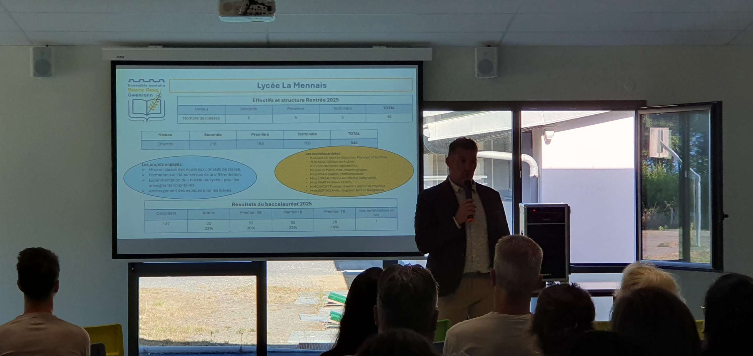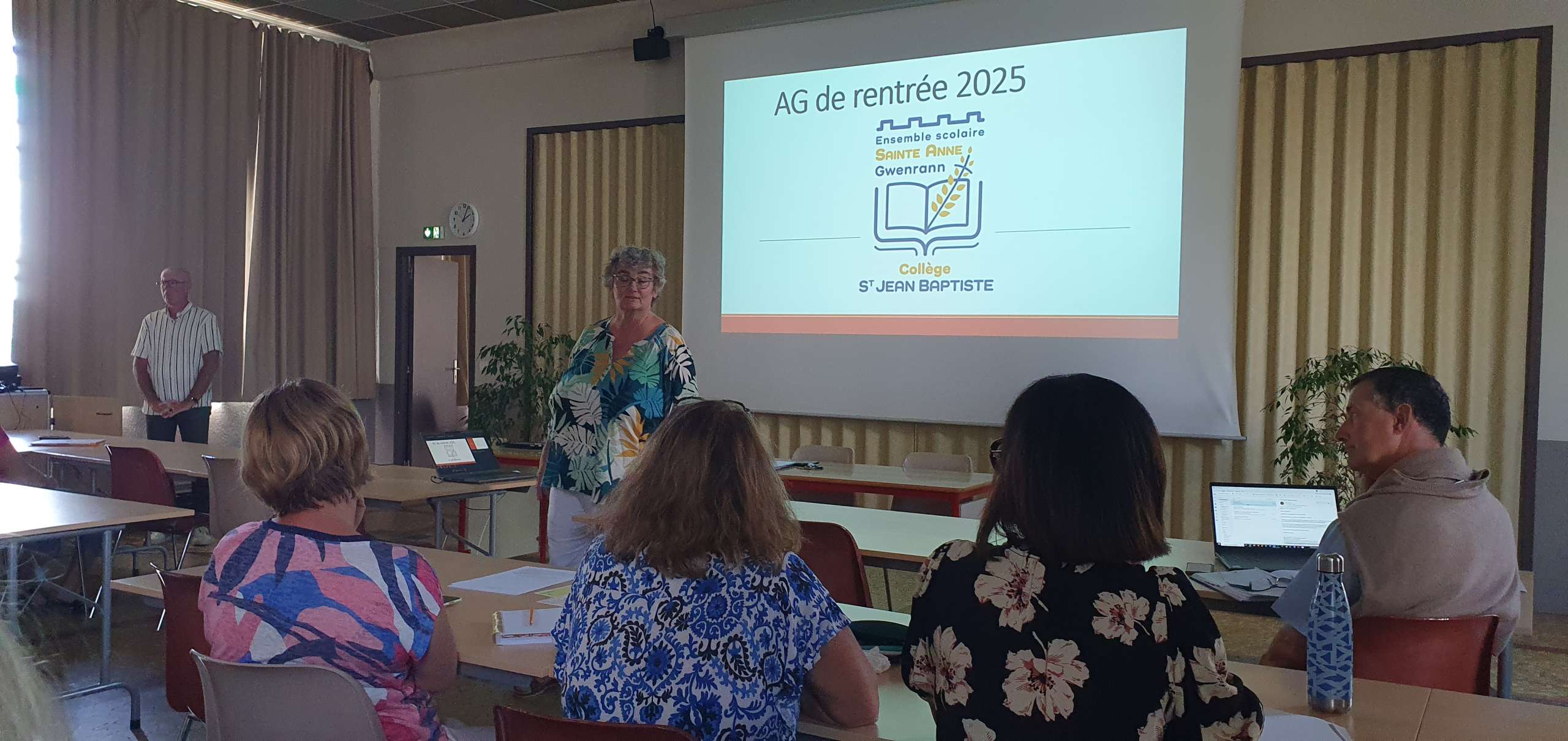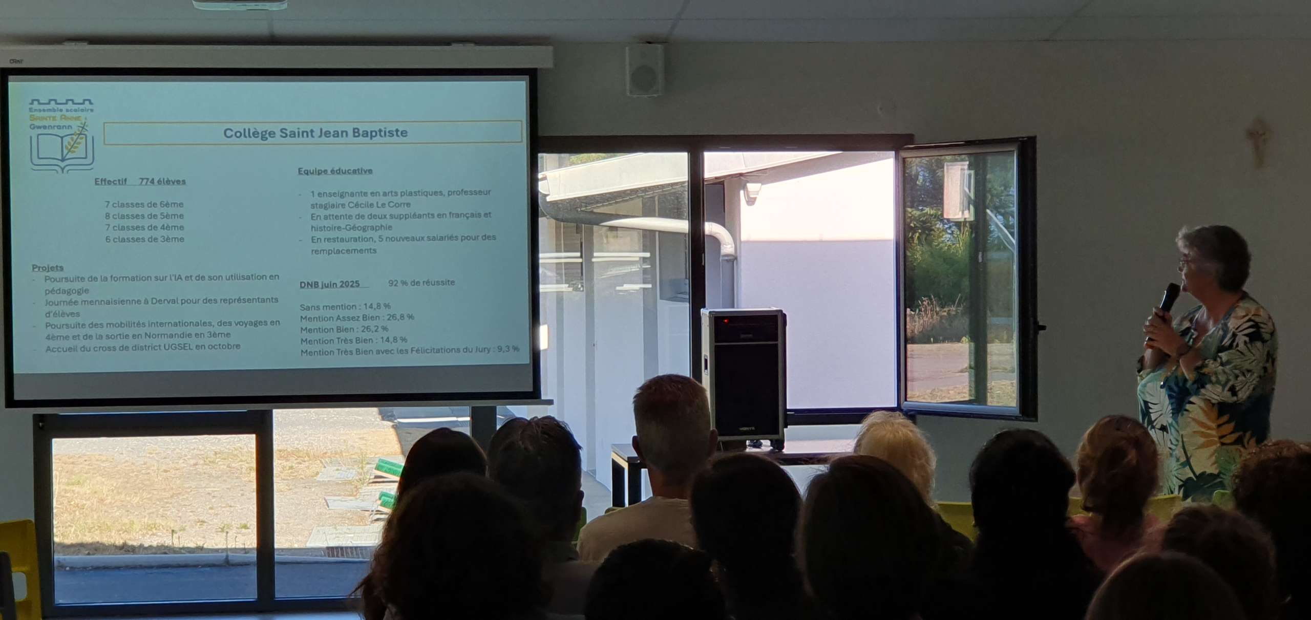 Les 3 chefs d’établissement ont pu, à tour de rôle, présenter les orientations des différentes structures mais aussi les projets communs pour l’année scolaire qui débute. Mme Le Breton fait sa première rentrée en tant que directrice de notre collège.