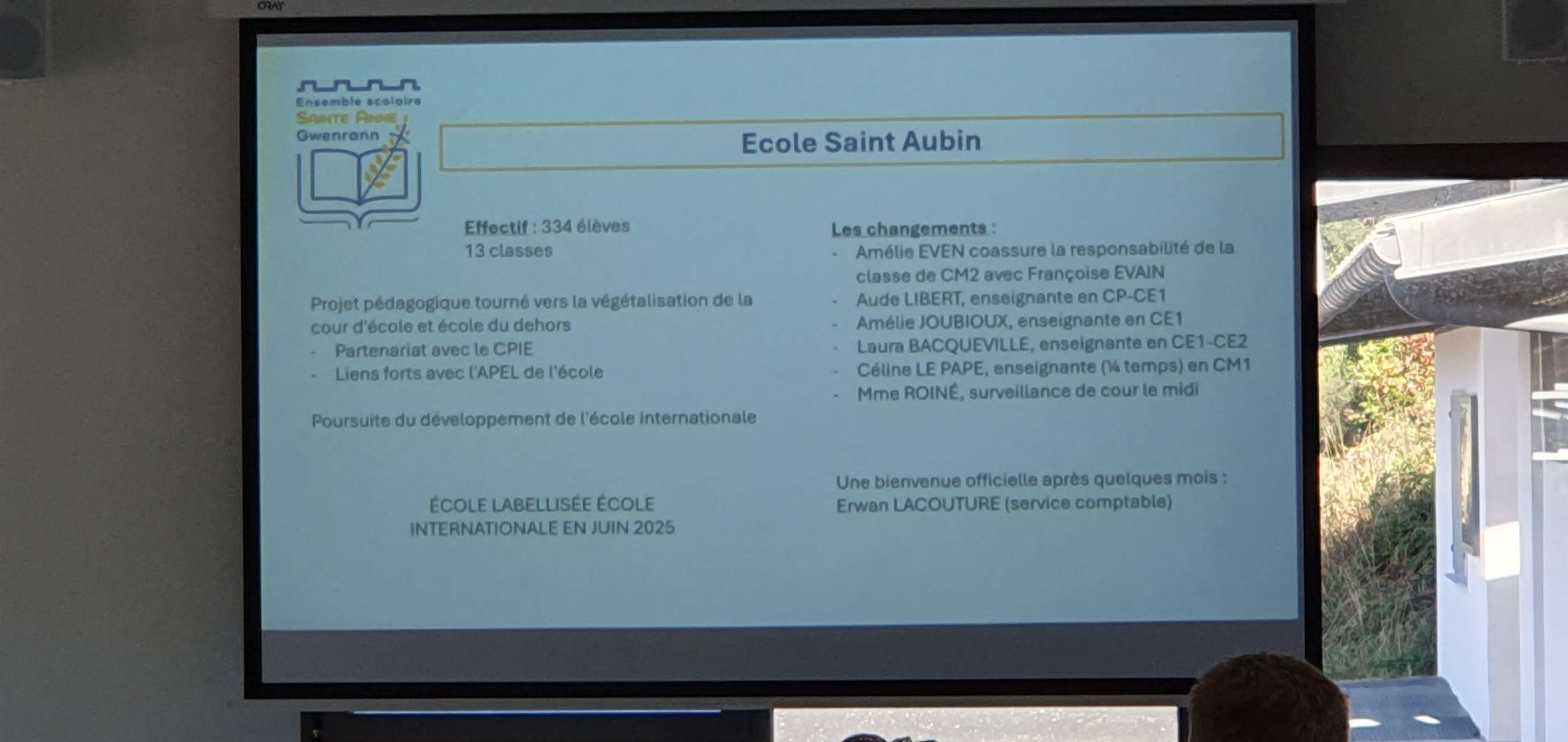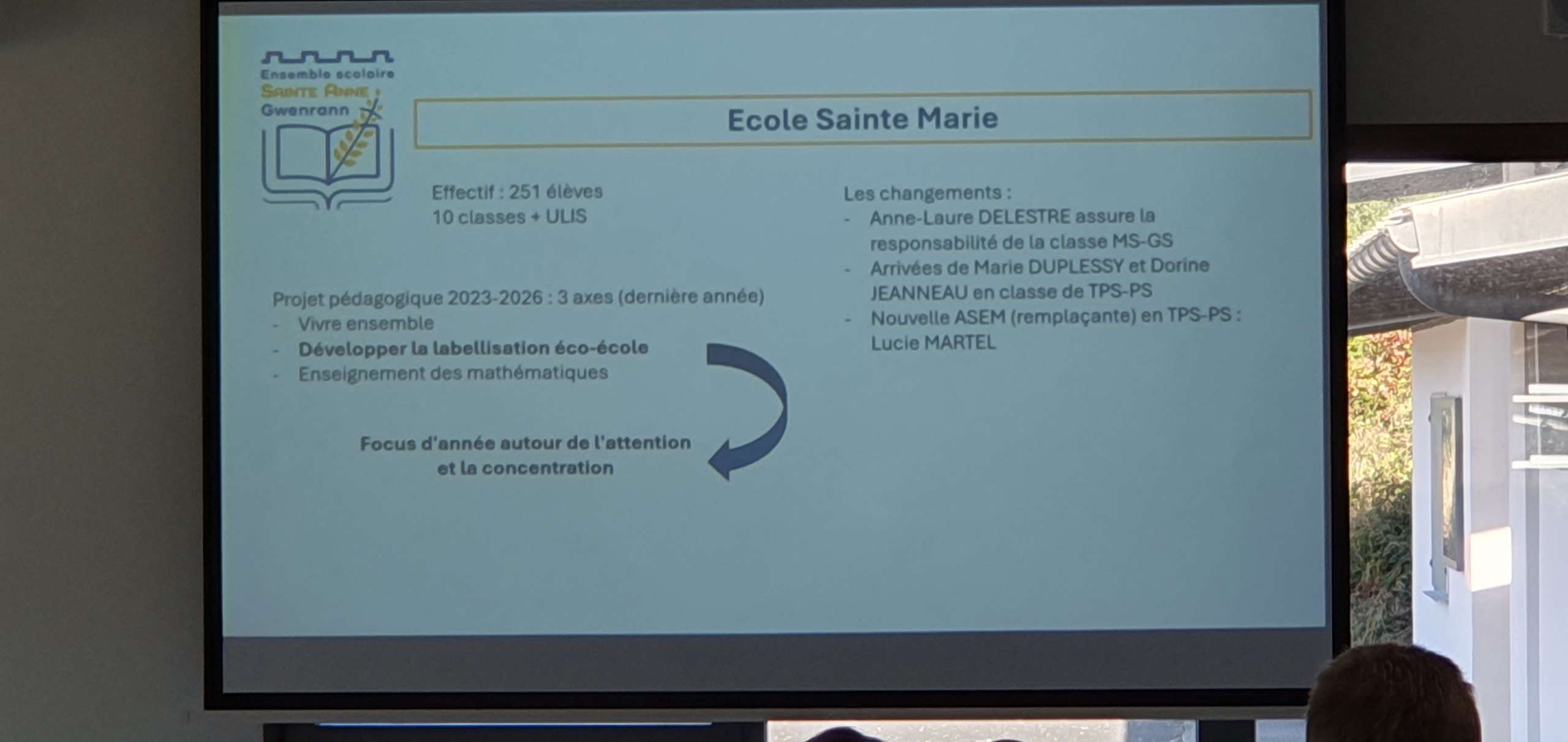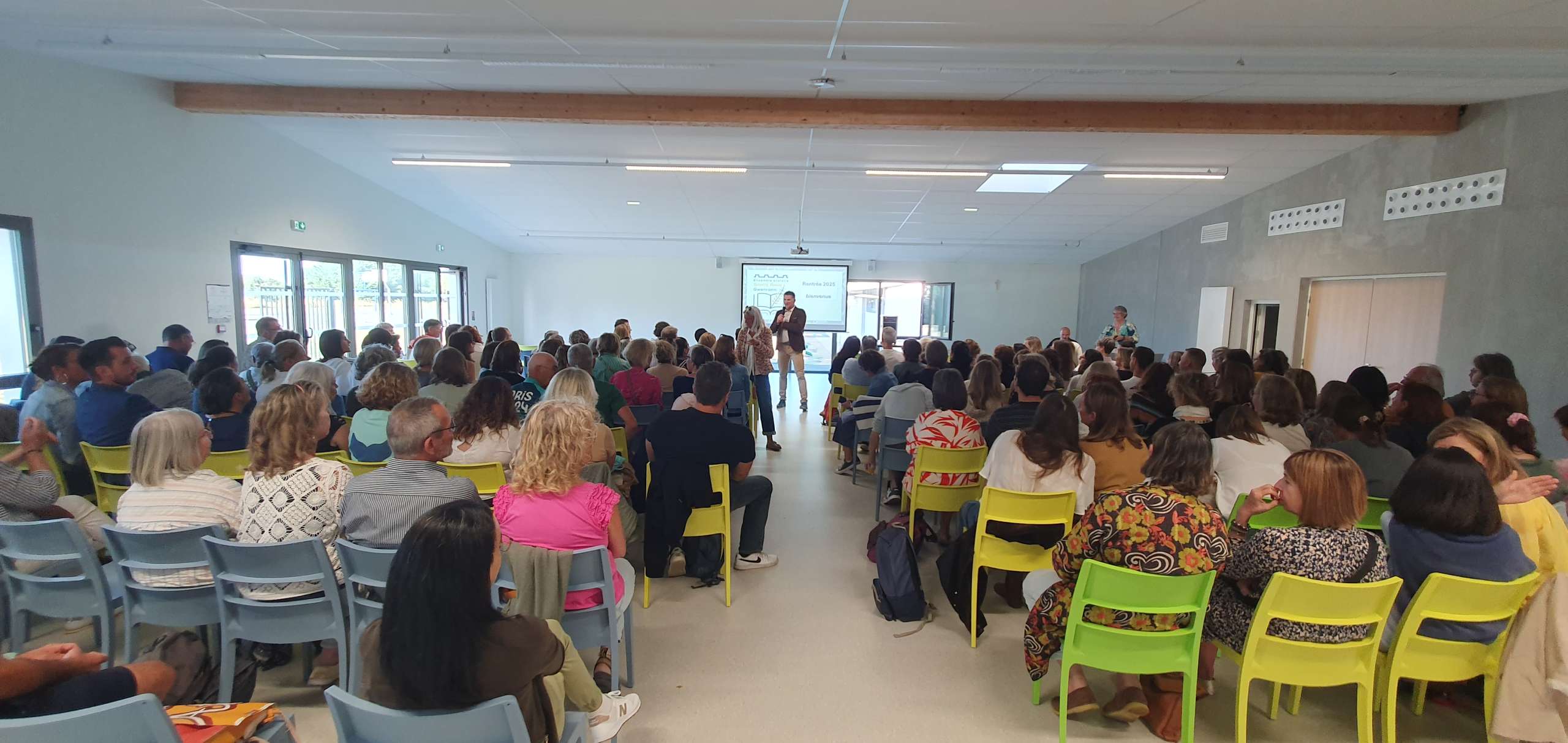 Les 3 chefs d’établissement ont pu, à tour de rôle, présenter les orientations des différentes structures mais aussi les projets communs pour l’année scolaire qui débute. Mme Le Breton fait sa première rentrée en tant que directrice de notre collège.