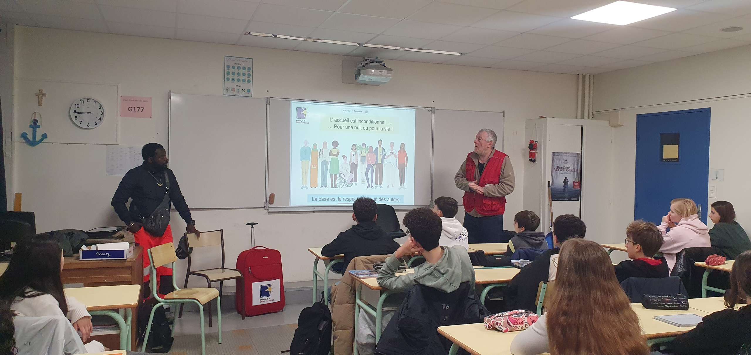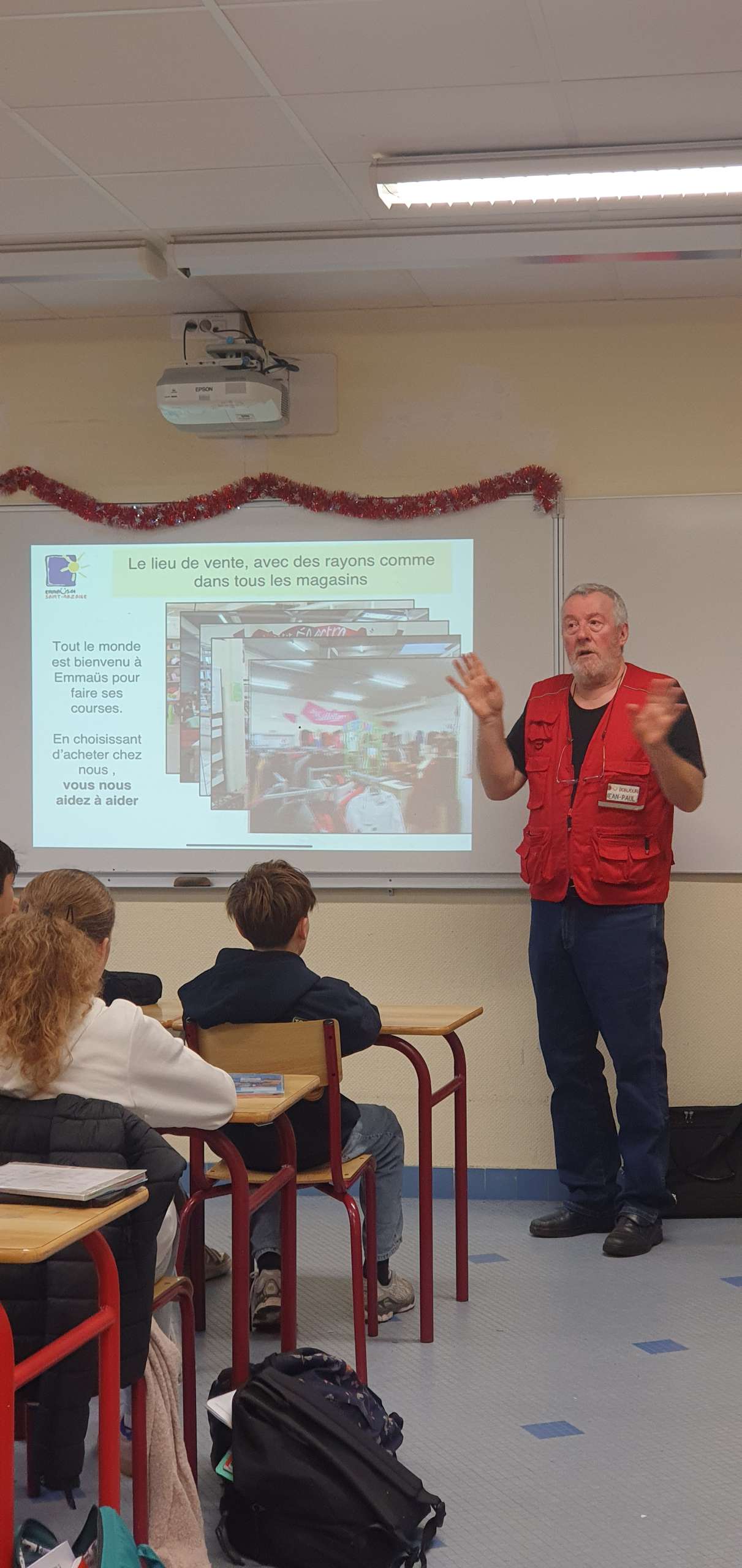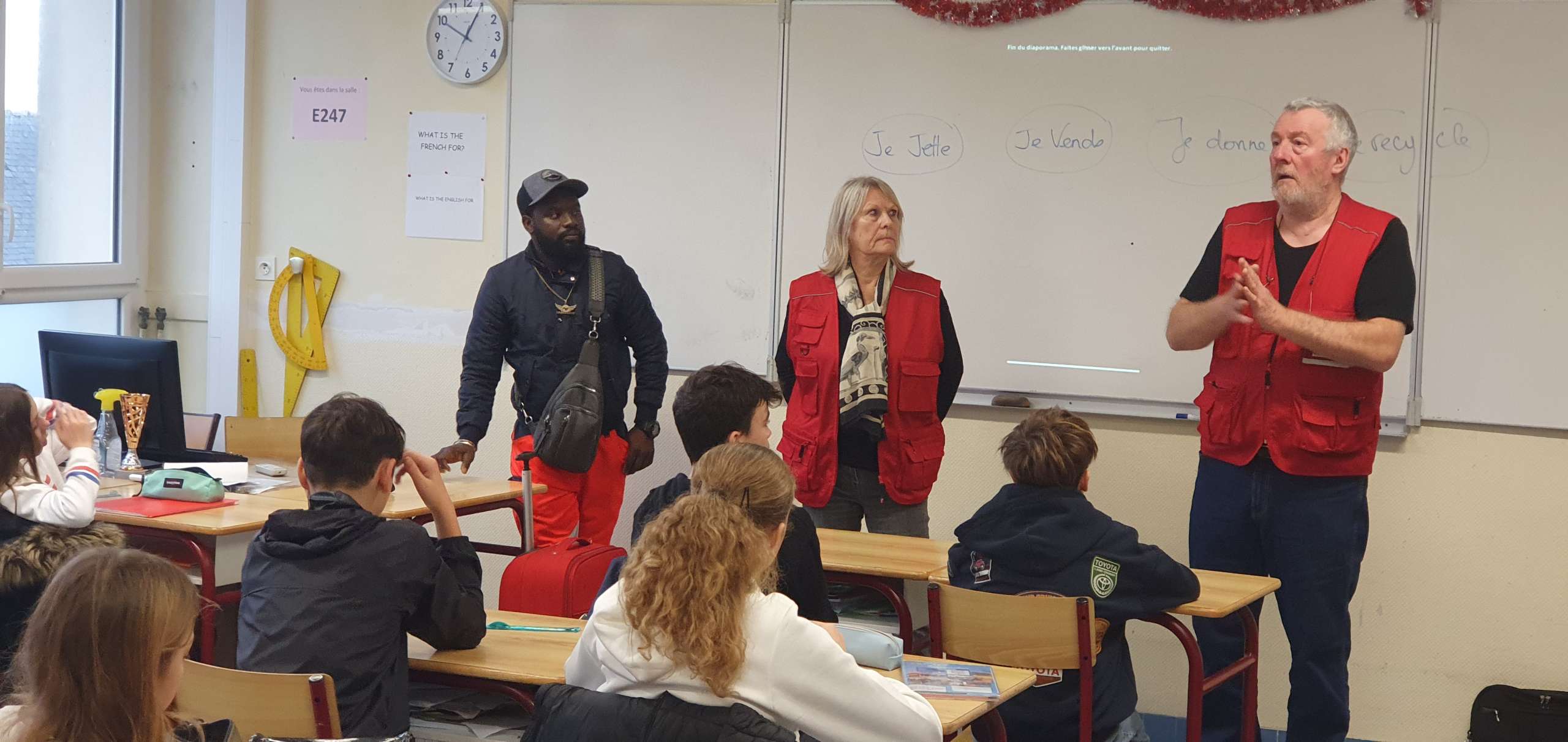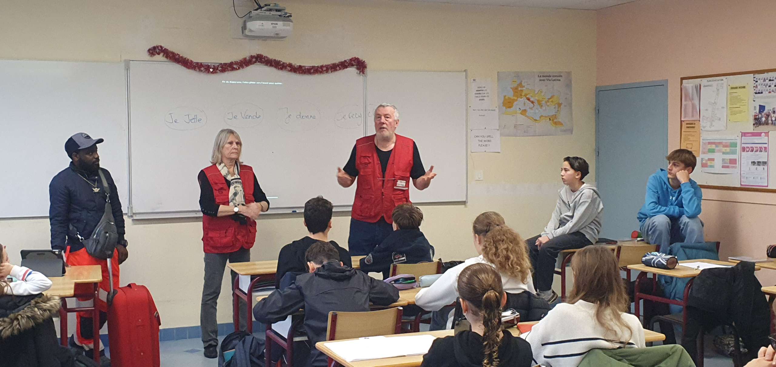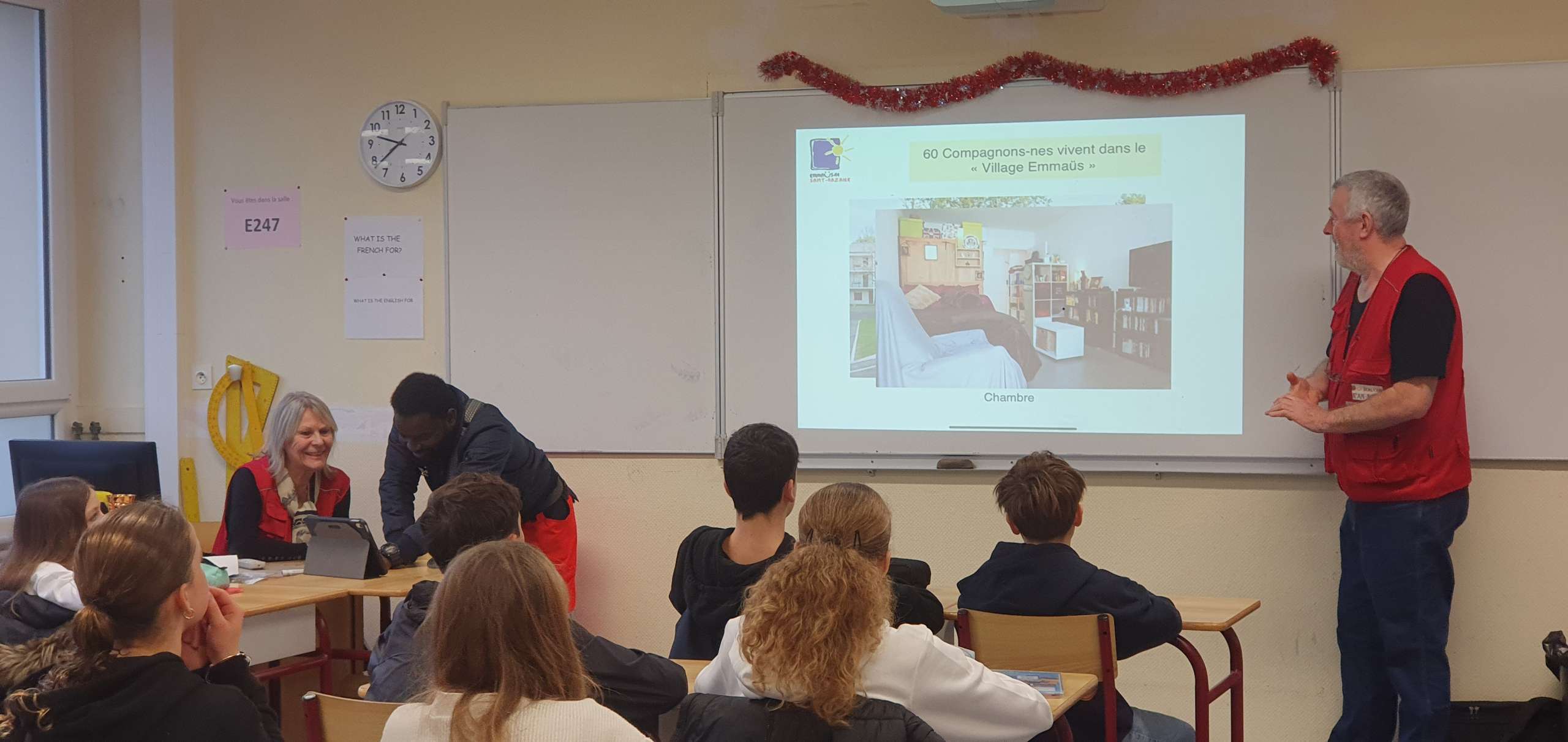 Deux bénévoles d’Emmaüs et un compagnon sont venus parler solidarité à deux de nos classes de 4ème aujourd’hui.