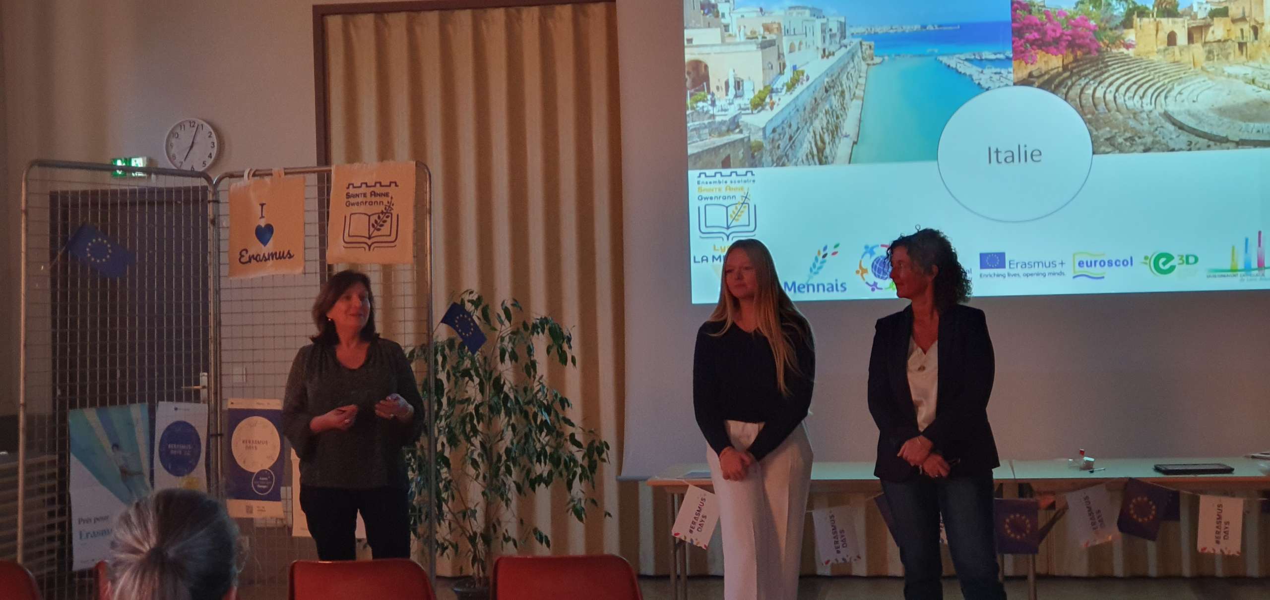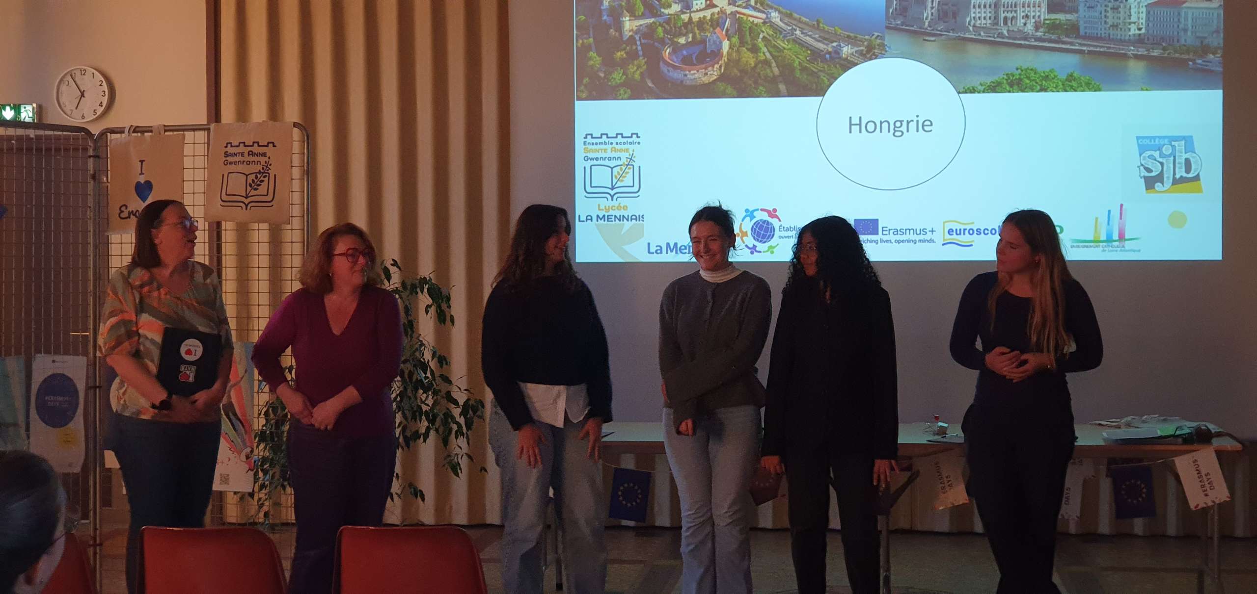 Tous les élèves et les adultes de la communauté éducative de Ste Anne Gwenrann qui ont bénéficié d’une mobilité à l’étranger, individuellement ou en groupes, dans des écoles ou des organismes de langue, sont venus la présenter.