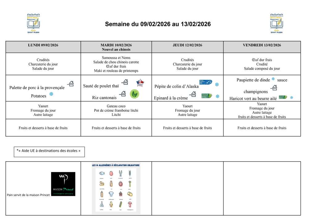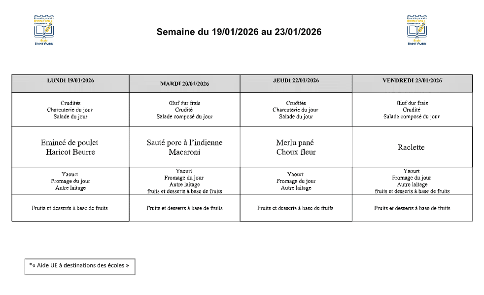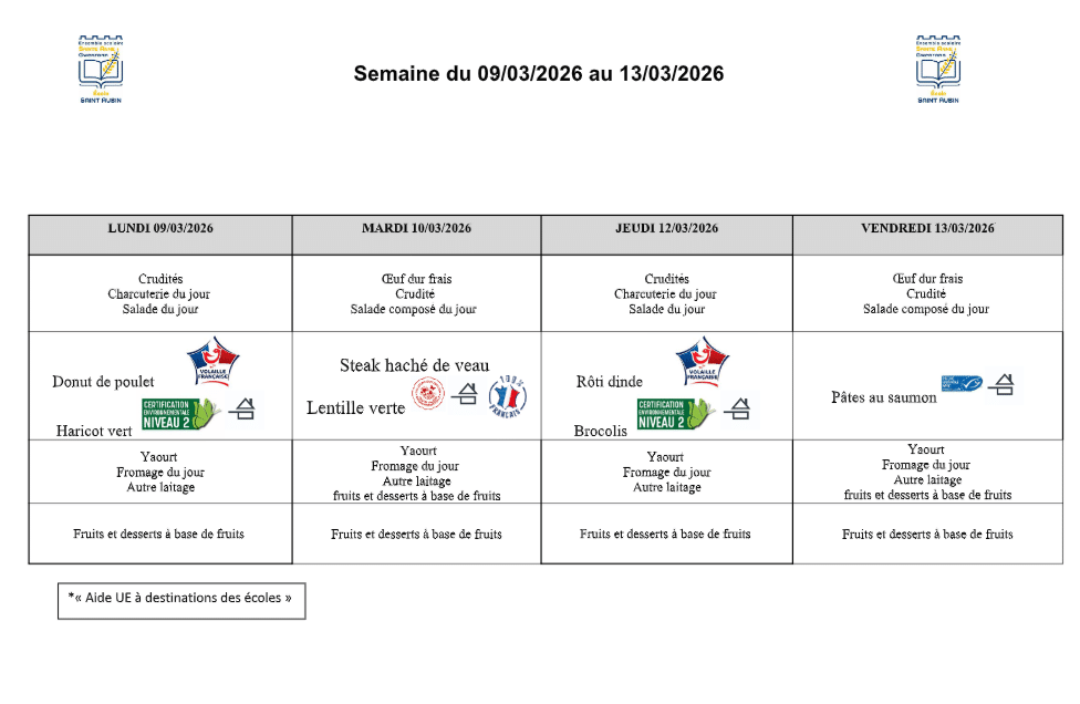 Le self et les menus de la semaine