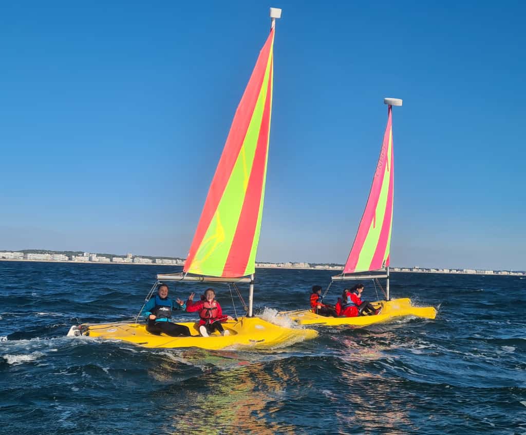 Après une météo très clémente en septembre, des conditions plus musclées en octobre ont permis aux élèves de naviguer en binôme sur un catamaran type fun-boat.