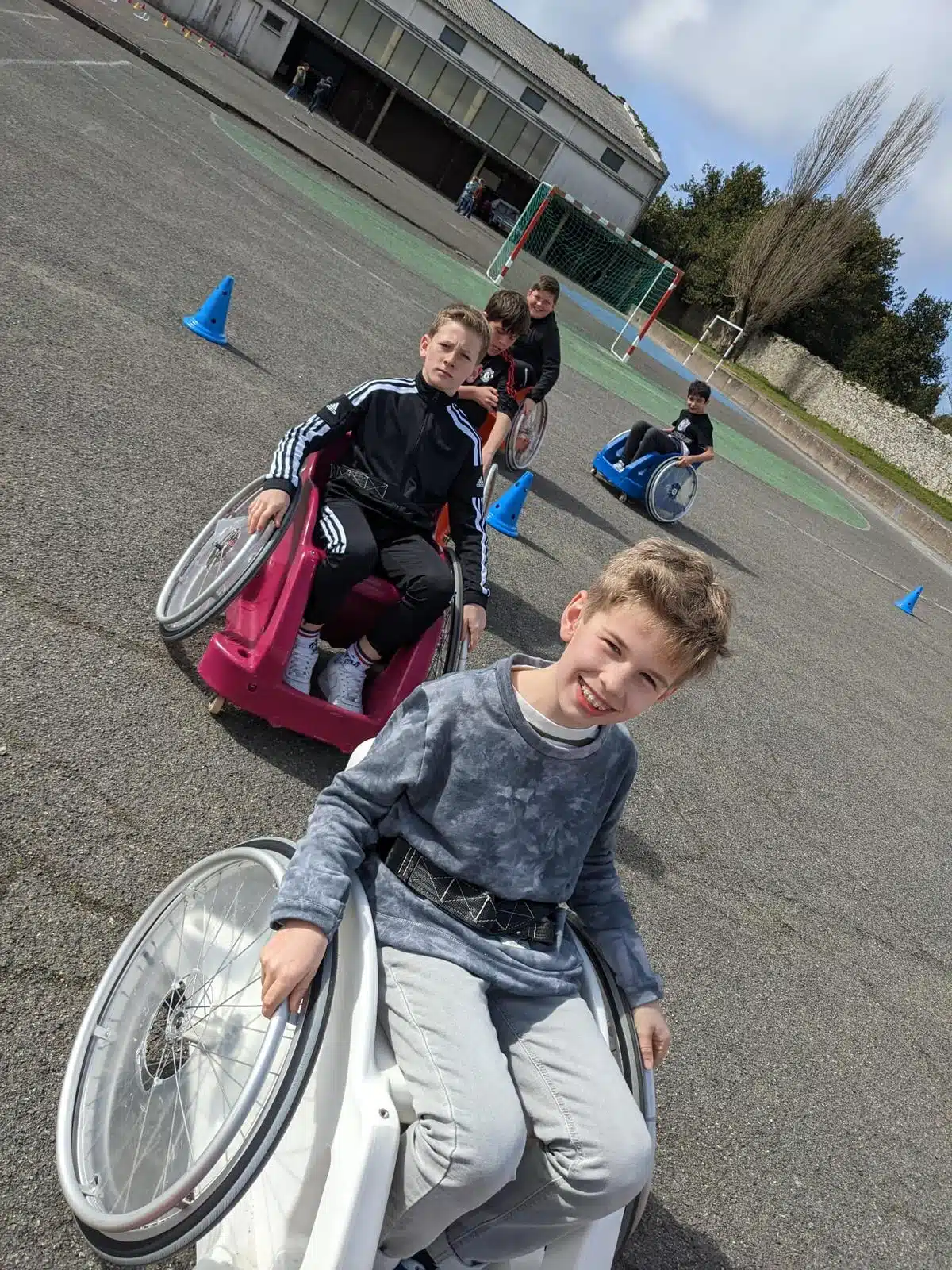 Ils auront vu le matin un beau film : Champions de Javier Fesser qui illustre à merveille les valeurs que nous avions à coeur de défendre. L’après-midi aura été consacré à des multiples ateliers et rencontres parmis lesquels : du Torbal, un atelier de sensibilisation aux différents handicaps, un atelier centré sur le handicap visuel, un atelier dys, du handball en fauteuil, la visite de personnes de St Jean de Dieu, un atelier de tir sportif, de la Boccia, un atelier cécifoot…