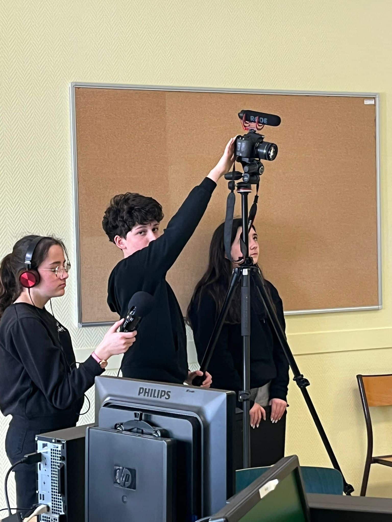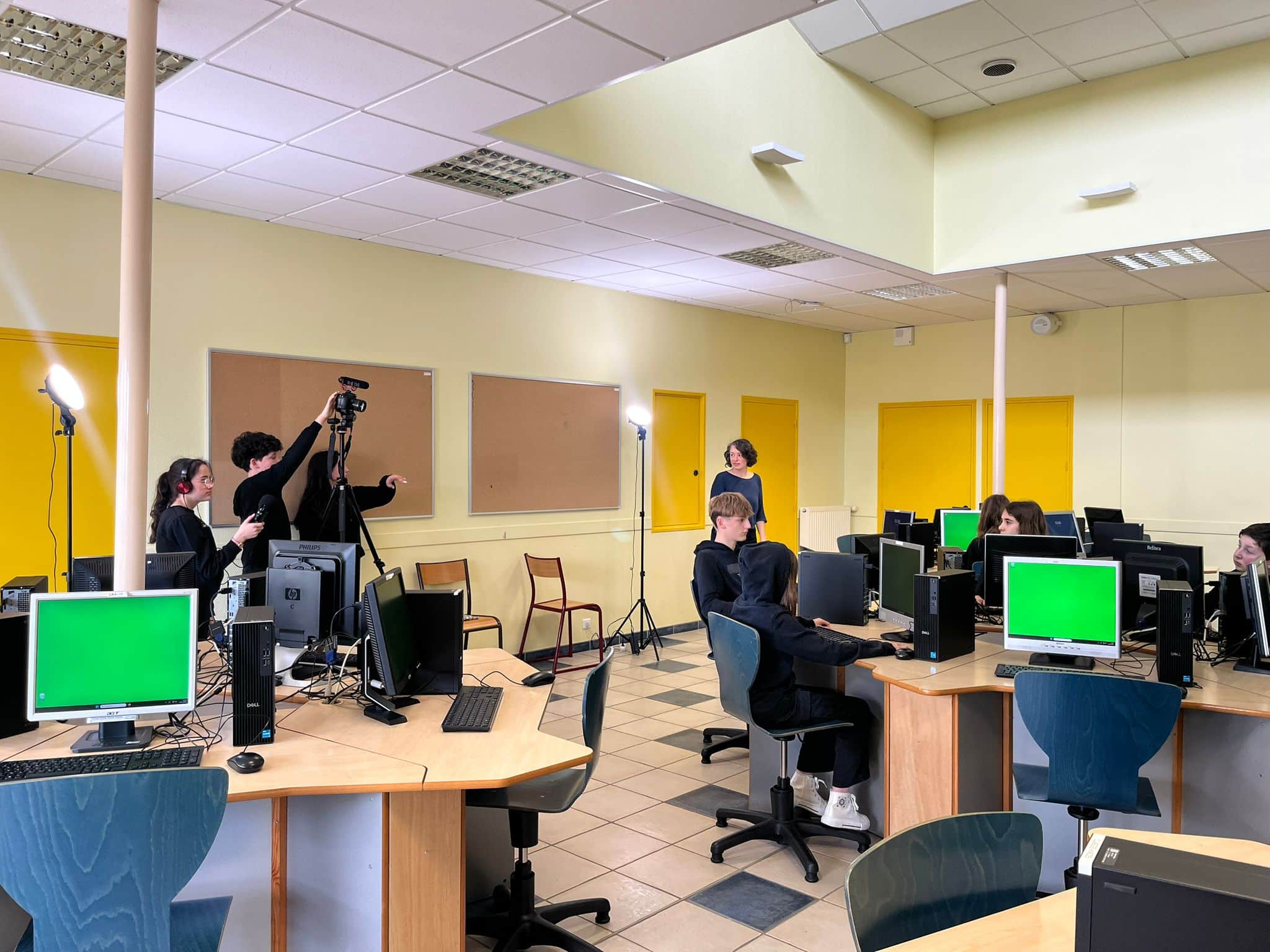 On attaque les choses sérieuses en option cinéma : le tournage du court-métrage a débuté jeudi. Entourés par leurs professeurs et par Julie Brébion, réalisatrice et intervenante en éducation à l’image pour le département, les 29 élèves de l’option se sont relayés pour tourner les premières séquences du scénario qu’ils ont écrit tous ensemble.